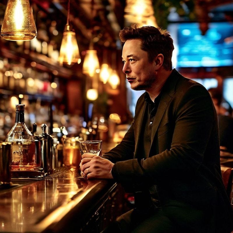 I was sitting in the bar and enjoying my beer. To everyone’s surprise, Elon Musk walks in. I think he wants some drink after openAI suing almost backfired him 😂